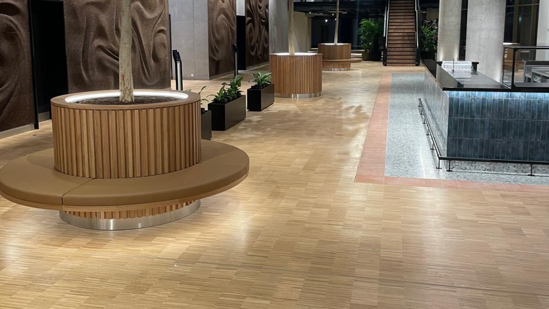 To complement the project’s ambitious design, we supplied HØRNING Solid Line oak flooring, finished with clear oil and installed by Loughton Contracts and Jared Pace. Durable, expressive and produced with certified wood, Solid Line delivers both the visual warmth and the technical performance required for high-traffic, flexible workspaces.