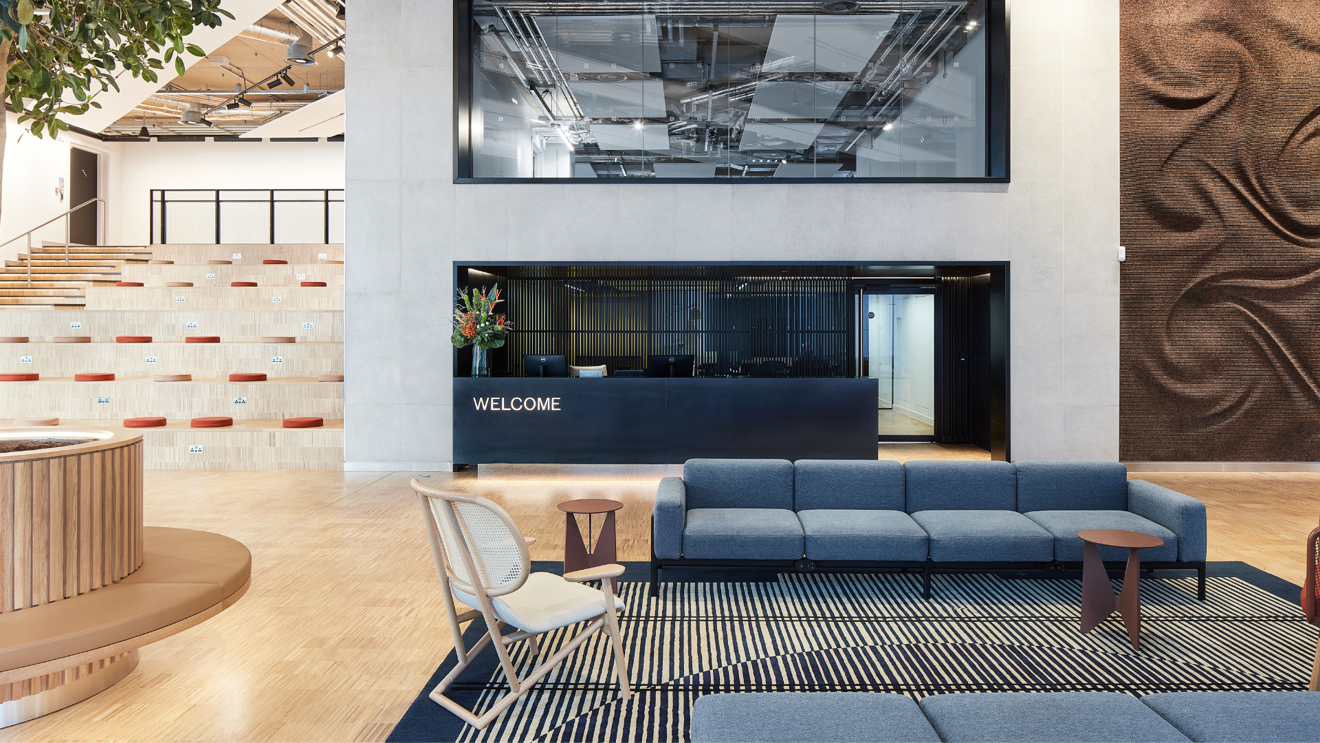 The flooring helps tie the interiors together, supporting the architects’ vision of creating a workplace that feels as inspiring and human as it is functional.