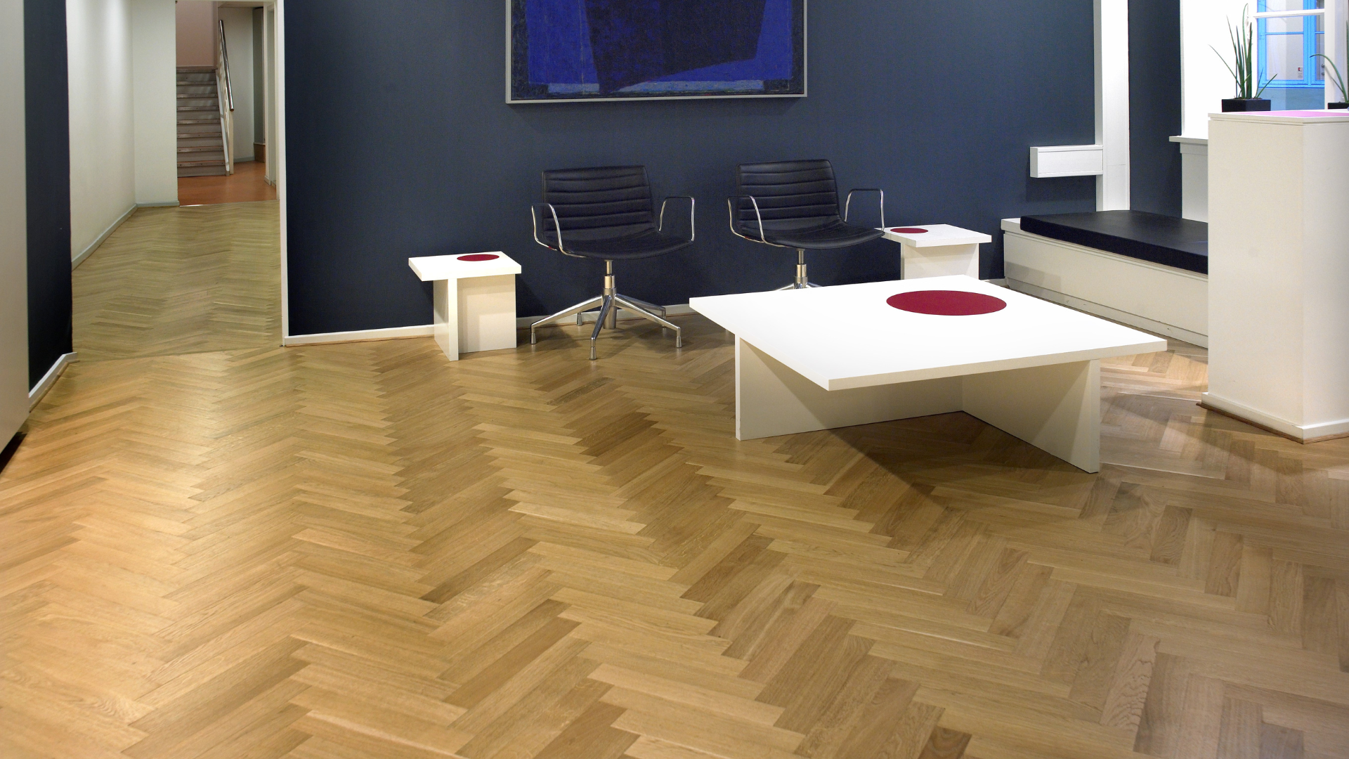 Oak is known for its timeless beauty but also for its strength and sustainability. The warm tone of the wood softens the formal architecture, creating a sense of calm and craftsmanship that complements the historic setting. Each parquet block, precision-laid and finished to perfection, contributes to a quiet but powerful statement: that durability and design excellence can, and should, go hand in hand.