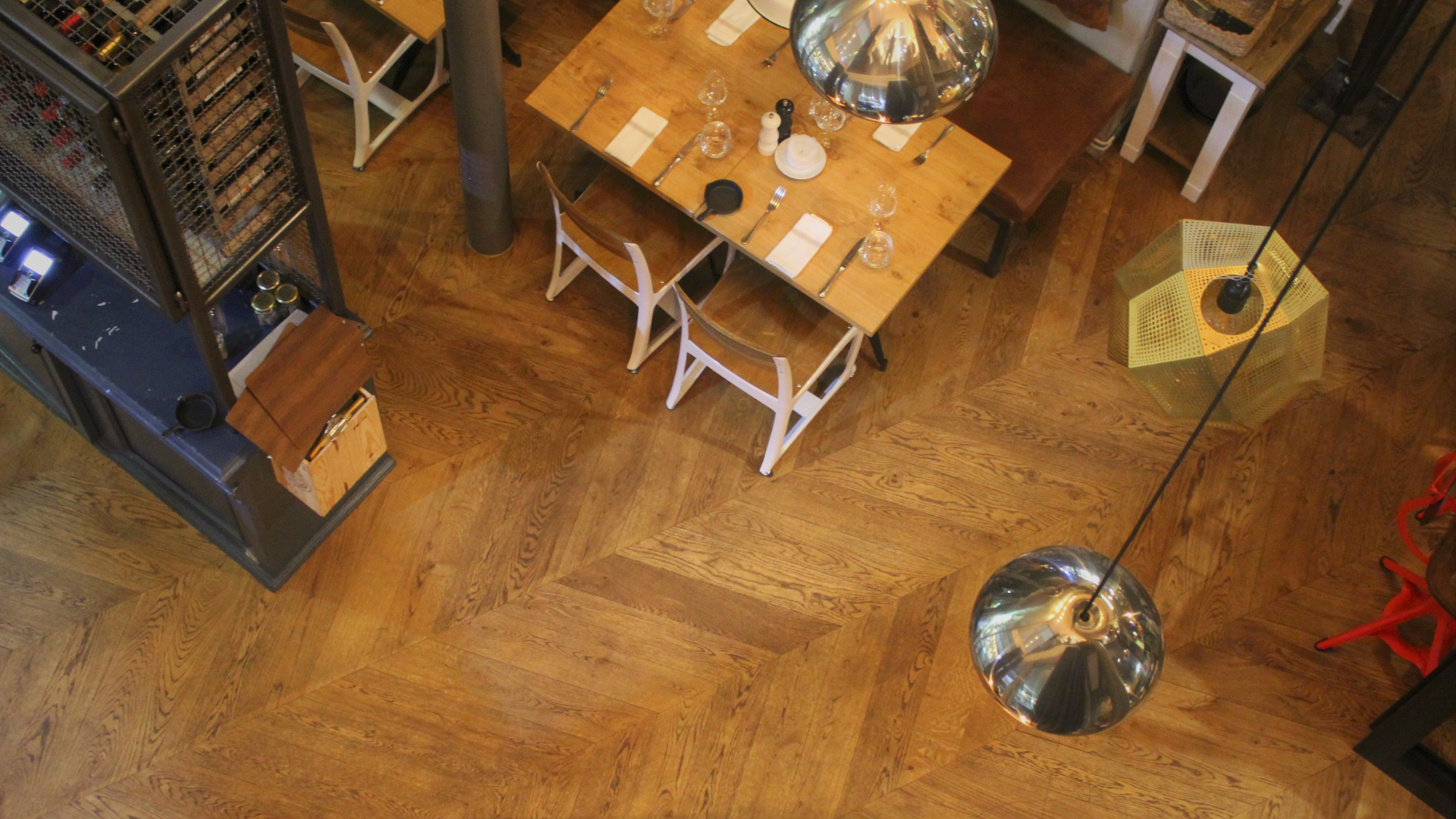 In a building where people move constantly from early morning to late night, the flooring must perform without compromise. The architect and client chose our Chevron oak solution not only for its visual impact but for its proven durability in high-traffic environments. Fully glued, precisely manufactured and crafted from solid oak, the floor delivers stability and longevity that align with the demands of modern hospitality design.