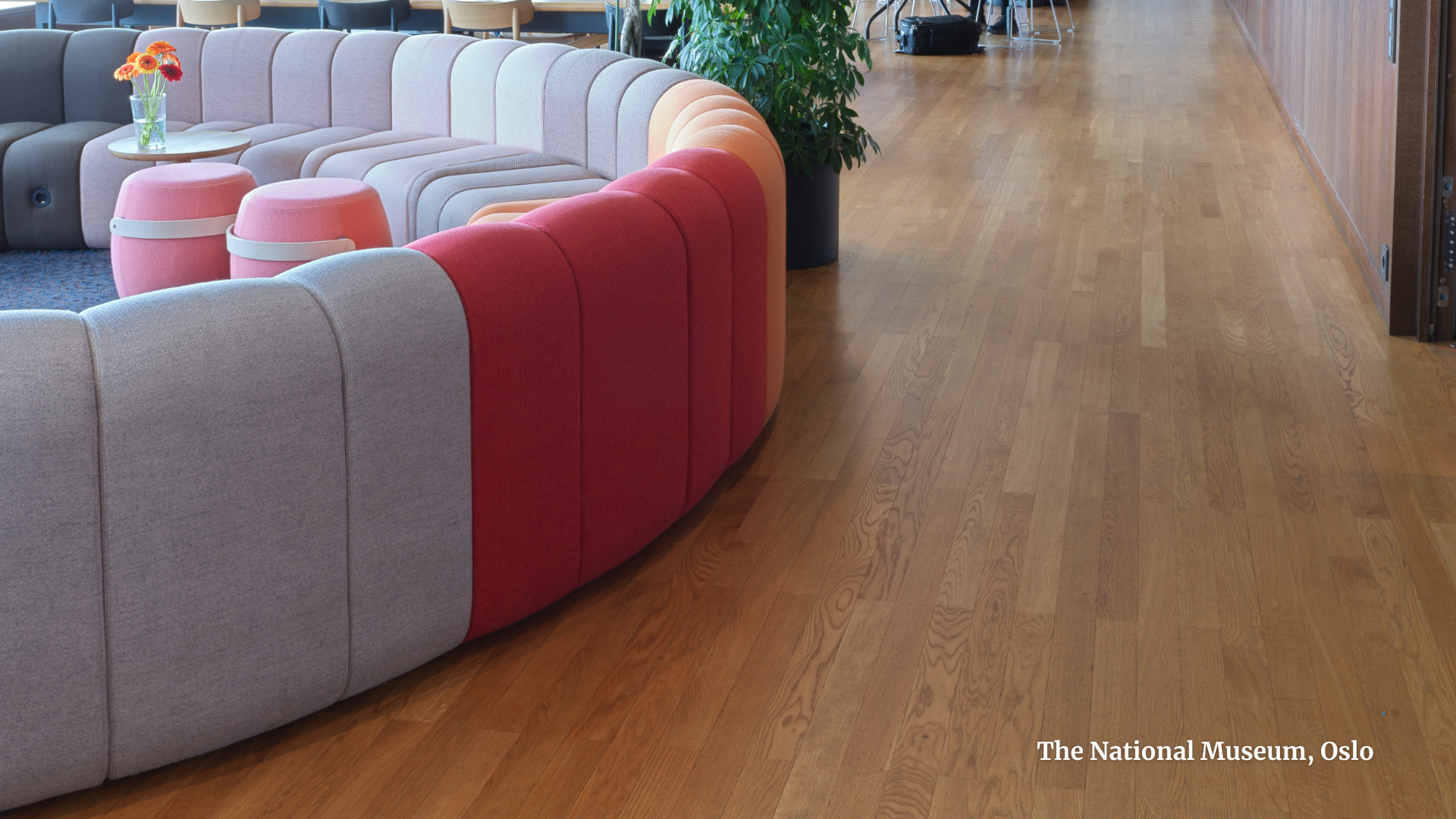 • At Oslo’s National Museum, varying plank widths and open joints honour classical craftsmanship while performing flawlessly under intense use.